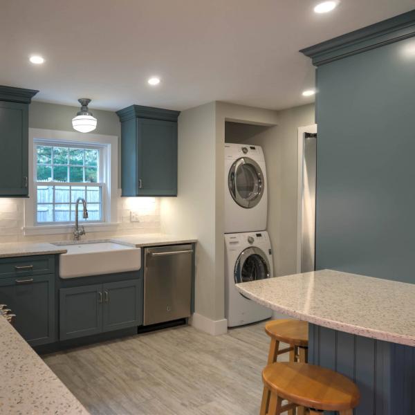 American Shaker U Shape Oasis Lacquer Blue Room Aundry Storage Cabinet With Two Washing Machine Images |