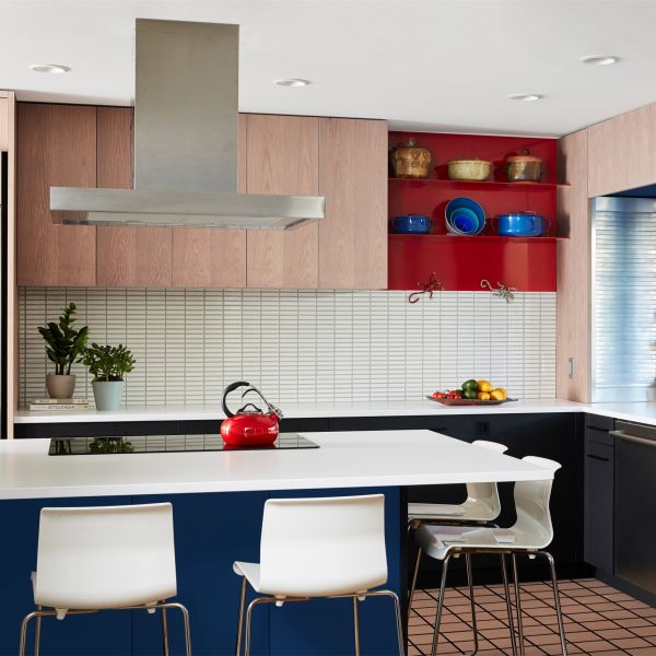 Shape : L shape black and wood texture melamine kitchen cabinet with white quartz top island